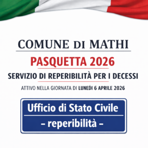 In occasione delle Festività Pasquali L’UFFICIO DI STATO CIVILE  per il giorno 6 APRILE 2026,